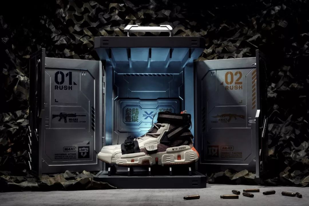 尤其引人注目的是,名为AK47-RUSH系列中的星速鞋款。此款鞋基于AK-47的创意灵感,完美结合了都市机能风格和军旅元素,充分展现出实用性与震撼视感的双重特性。这并非只是一双鞋而已,而是一种个性表达与内涵呈现,喻示着在游戏世界里勇往直前的坚定信念。