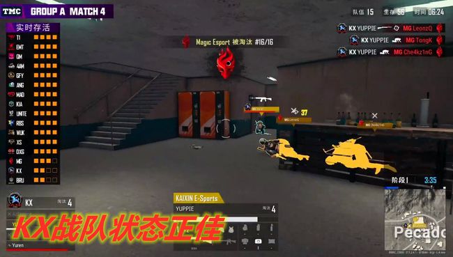 小将手感极佳,接连一局斩获十杀。在队友Yuren的协助下,即便决赛圈人数处于劣势,也能以2敌4击败GFY成功夺冠。第二日比赛落幕,KX凭借小将的出色表现,排名A组第四,让之前对其不抱希望的网友都刮目相看。